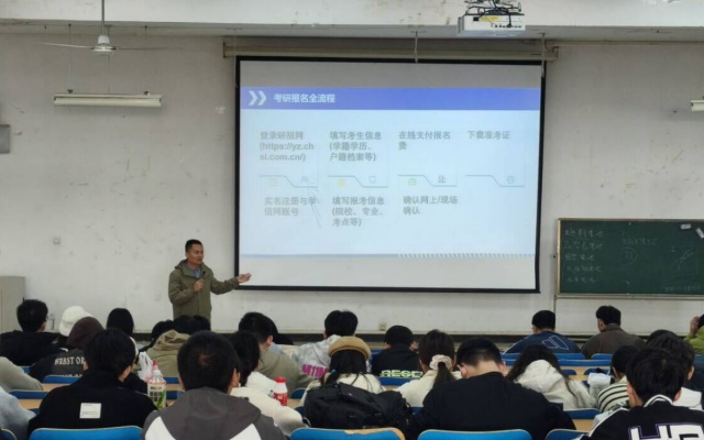 在工作推进过程中,庄文昌院长多次主持召开领导小组会议,部署相关任务。10月24日,学院召开全院教职工考研工作推进会,围绕时间安排、目标任务、报名情况、学生基础、报考院校与专业保障等方面,布置本年度考研支持计划。系统分析学生英语、数学、政治等公共课成绩,梳理近年来报考集中的院校与专业,组织专业导师整理核心课程考试题库,为学生提供精准复习指导。针对报考集中的专业课程,学院遴选骨干教师,面向全体考研学生开展定时、定点的集中辅导。同时,学院制定敬信楼120、121教室作为专用考研自习室的布置方案,着力营造专注、积极的备考环境。组织辅导员开展“一生一档”谈心谈话,主动关注学生诉求,对压力过大或情绪波动的学生保持定期沟通,做他们可靠的倾听者与支持者,有效缓解备考焦虑,增强应试信心。此外,学院还注重考研工作的长效机制建设,从低年级开始谋划布局,将考研引导融入新生入学教育、专业导论、生涯规划、就业指导与形势政策课等环节,全方位营造重视考研、支持考研的浓厚氛围。