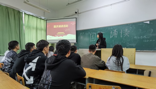 为了持续弘扬社会主义核心价值观,进一步提高大学生的人文素养和道德情操,推动校园文化建设,材化学院于2020年10月11日下午在敬信楼404室举办了“爱国诵读”活动。