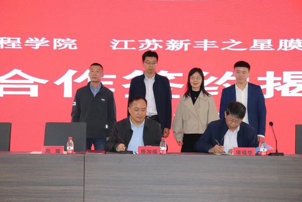 为进一步深化与企业的合作,加快学院学科建设、产教融合和人才培养,近日,我院院长堵锡华教授、副院长陈艳教授、副院长庄文昌博士等一行来到宿迁,分别和新丰之星膜材料有限公司及江苏奥赛体育科技有限公司洽谈合作,并签订了产学研合作基地、实习基地和就业基地的“三基地”建设协议,并举行了授牌仪式。