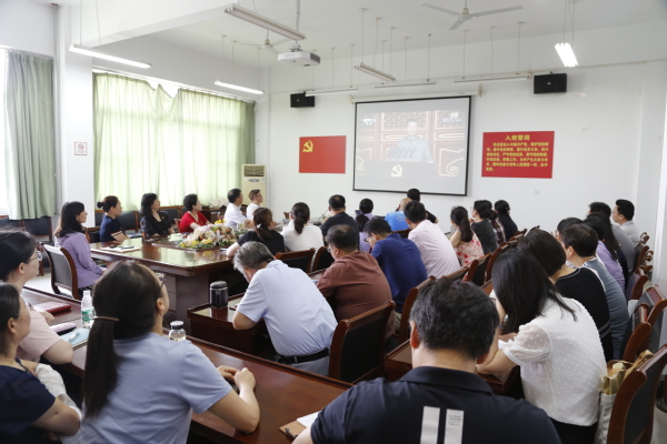 7月1日上午8:00,庆祝中国共产党成立100周年大会如期在天安门广场举行。我院党委组织全院师生收看了大会盛况直播。其中学院党委班子全体成员与学院全体教工党员在敬信楼328室集中收看,其他非党员教师和在校学生或集中在办公室、或分散在教室、宿舍同步收看。