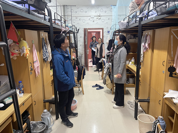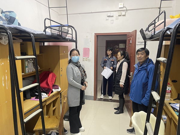 此次走访检查,主要是对全院学生宿舍卫生状况、疫情防控、用电安全等问题进行检查和指导。尤其是每到一间新生宿舍,都告知学生:宿舍严禁吸烟、严禁私扯电源、禁止使用违章电器、不得夜不归宿、常开窗通风。并对物品如何摆放给予细致指导,对洗漱台、卫生间和阳台等卫生死角进行认真检查并提出整改建议。耐心询问学生生活诉求,并对学生提出的诉求给予答疑和跟进落实。