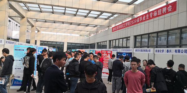 当天下午,化学化工学院2020届专场招聘会在大学生活动中心招聘大厅举行,这是我院举办的第二届专场招聘会,邀请了近30家企业参会,岗位涵盖机电、信电、环境、土木、食品、经管、人文、外语等,提供超过1800个岗位。这些企业中,有4家是中国企业500强,有5家是上市公司。其中的8家企业与化学化工学院签订了实习就业基地协议。参加招聘会的企业共收到简历800余份,部分企业在招聘会后进行了面试。