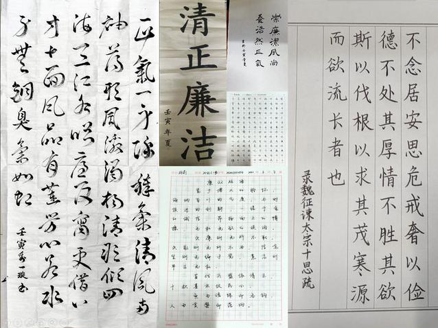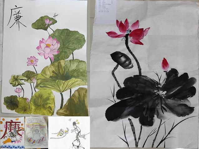同学们踊跃投稿的近20幅精美书画作品包含廉政文化的格言警句誊写、象征廉洁的景物绘画、轻松又充满意味的漫画等等,透露出中华传统美德,充满教育意义。
