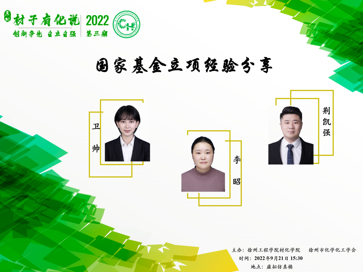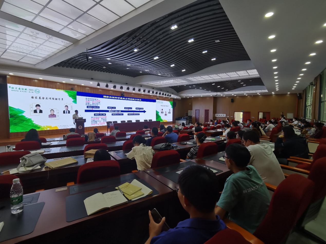 为动员教师积极申报2023年国家基金,营造人人争先拿国基的氛围,促进学院科研高质量发展,材化学院于2022年9月21日举办国家基金立项经验分享活动。活动邀请本院今年立项国家自然科学基金青年项目的3位老师,结合自身申报国家基金的经验和做法进行分享,学院全体教师参加了本次活动。