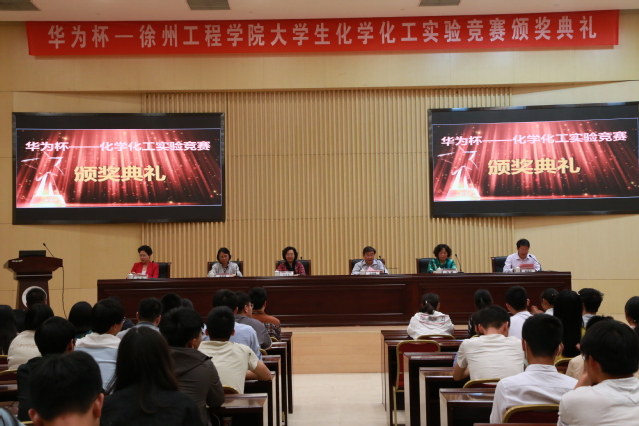 为了深入贯彻落实我校“大应用观”人才培养战略,提高我校学生动手实践能力,加强学生对化学、化工实验技能的掌握及应用,激发同学们对化学知识学习的兴趣,化工学院联合教务处共同举办了“华为杯”必发集团7790大学生化学化工实验竞赛,并于5月4日在行政楼报告厅举行了颁奖典礼,表彰竞赛优胜者。副校长王冬冬教授、教务处邵晓根处长、环境学院高明侠院长、食品学院汤敏书记、我院刘艳书记和堵锡华院长一同出席了本次大会。