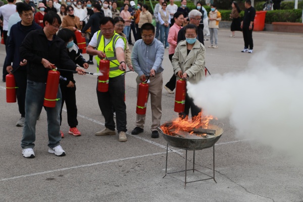 演练介绍了灭火器、消防栓、消防水带的使用方法和注意事项,随后进行了干粉灭火器和消防水带的灭火演练。各组人员均轮流操作,最终大家均熟练掌握了灭火器、消防栓和消防水带的使用方法。