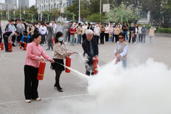 4月10日下午,我院在一期篮球场举行了师生消防演练。全体院领导、教师和部分学生代表200余人参加。