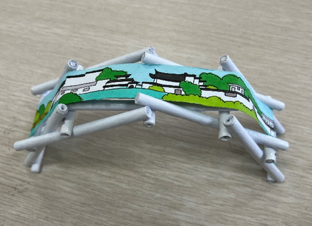 活动倡议使用废纸、胶水为原料,由各团队设计并制作出“纸桥”,在考较各组作品承重能力的同时,也兼顾美观。同学们通过运用力学知识,通过精巧的手工,制作完成了一架架精美的纸桥。经过裁判团的判定,来自材化学院21级的杨锦岳团队设计的作品以2.3公斤的承重能力获得了大赛第一名。