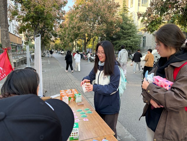 活动现场,志愿者忙碌地将废弃纸箱兑换为种子盲盒、种子贴纸以及书签,并通过宣讲、发送传单普及环保知识,让环保意识深入每个同学的心中。活动收集的纸箱后续将用于学院大学生科创协会开展纸桥设计大赛。