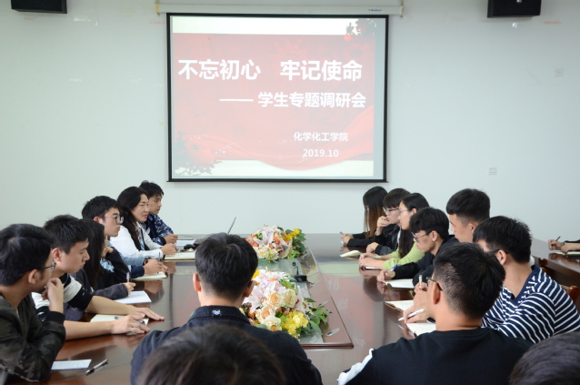 按照校党委“不忘初心、牢记使命”主题教育的统一安排部署,化学化工学院于10月12日在学院会议室召开了学生专题调研会。学院党委副书记胡美丽主持,团委副书记张戈、学生党员、主要学生干部代表参加了会议。