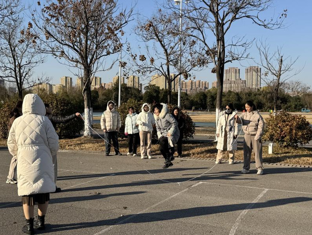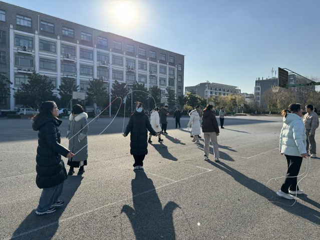 活动当天,趣味跳绳比赛在操场激烈上演。教职工们身姿矫健,动作敏捷,单人跳、双人跳、多人接力跳,形式多样,精彩纷呈。特别是多人接力跳绳项目,更是考验了团队之间的默契与协作能力,一根长长的跳绳在空中划出优美的弧线,参与运动会的教职工们默契配合,一个接一个地跃入绳中,动作整齐划一,完美地完成了一次次跳绳接力。通过此次冬季运动会,教职工们不仅锻炼了身体,更收获了快乐与成就感。